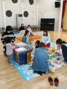 ゆったりとした空間の中で、遊びにいらしてくれた皆さんといろいろなお話をさせていただけたのではないかと思います!お子さんたちもニコニコで遊んでいて、ほっこりした気持ちになりました(^^)
