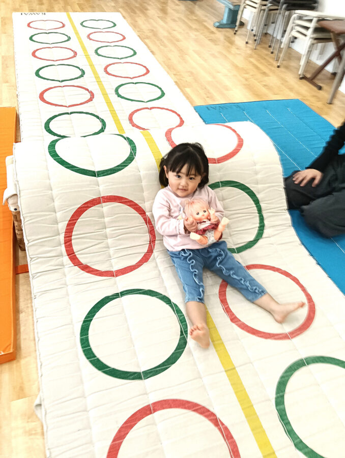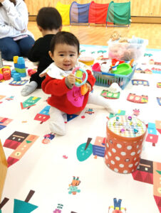 小さい赤ちゃんは広いところをずり這いしたり、少し大きいお姉さんたちは、走ったりジャンプしたり元気いっぱいに遊んだりしましたよ!