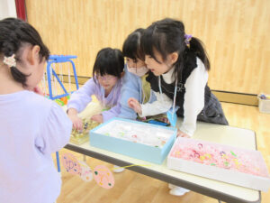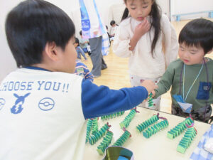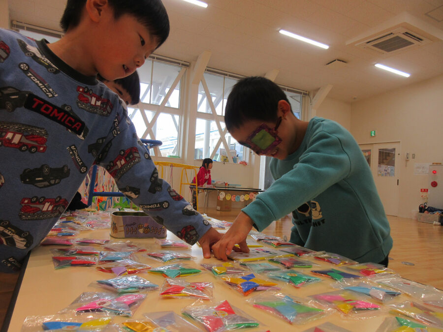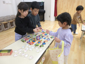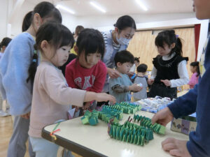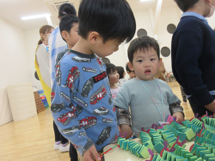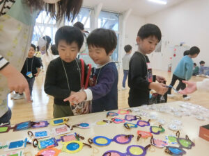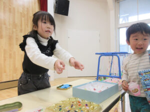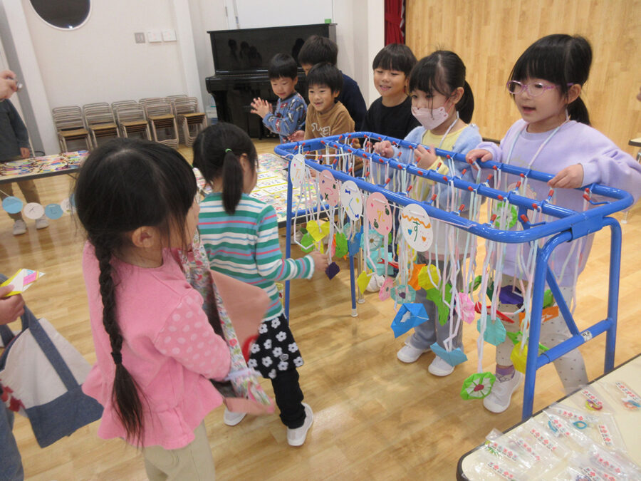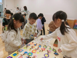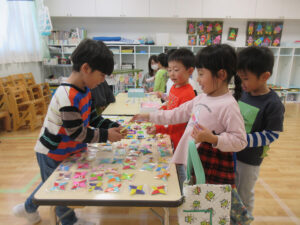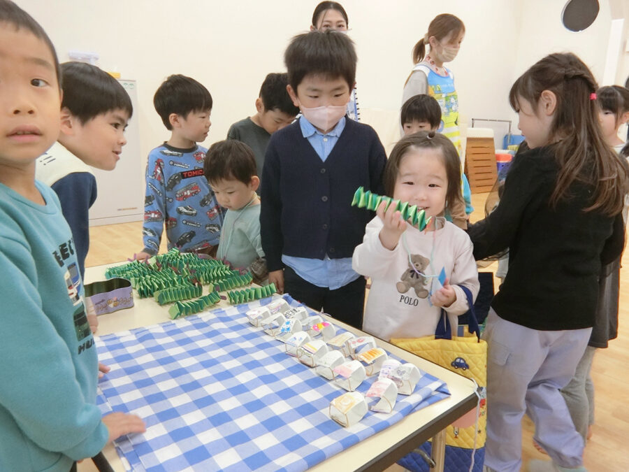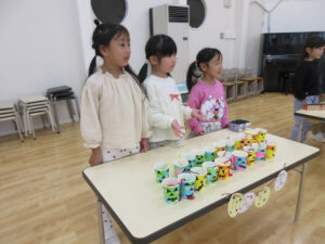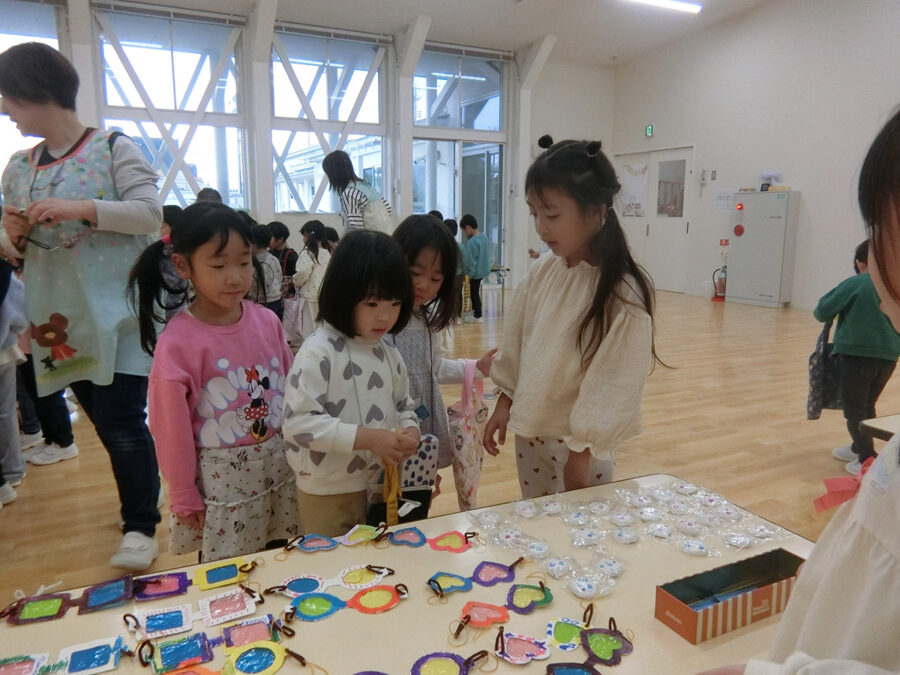 お店屋さんごっこ 10月 ゆり組の子どもたちが作った品物を、たくさんのお友だちが買いに来てくれました! 品物も買ってくれるお友だちのことを考えながら一つ一つ丁寧に作りました! 小さいお友だちはお兄さんお姉さんと一緒に買い物を楽しんだり、たんぽぽ組やちゅうりっぷ組はチケットと交換で品物を購入したり楽しみました! 投稿ナビゲーション ピアノで遊ぼうおにぎり給食・ピクニック
