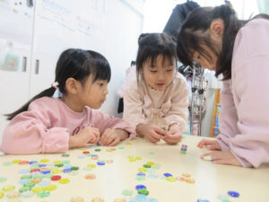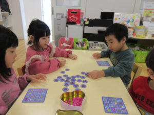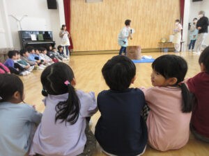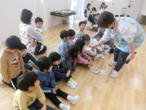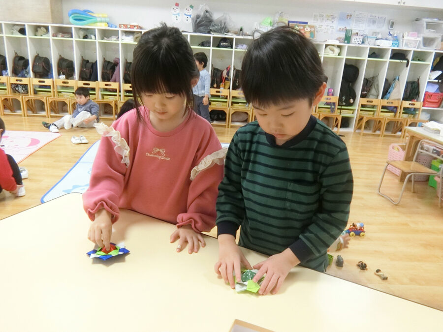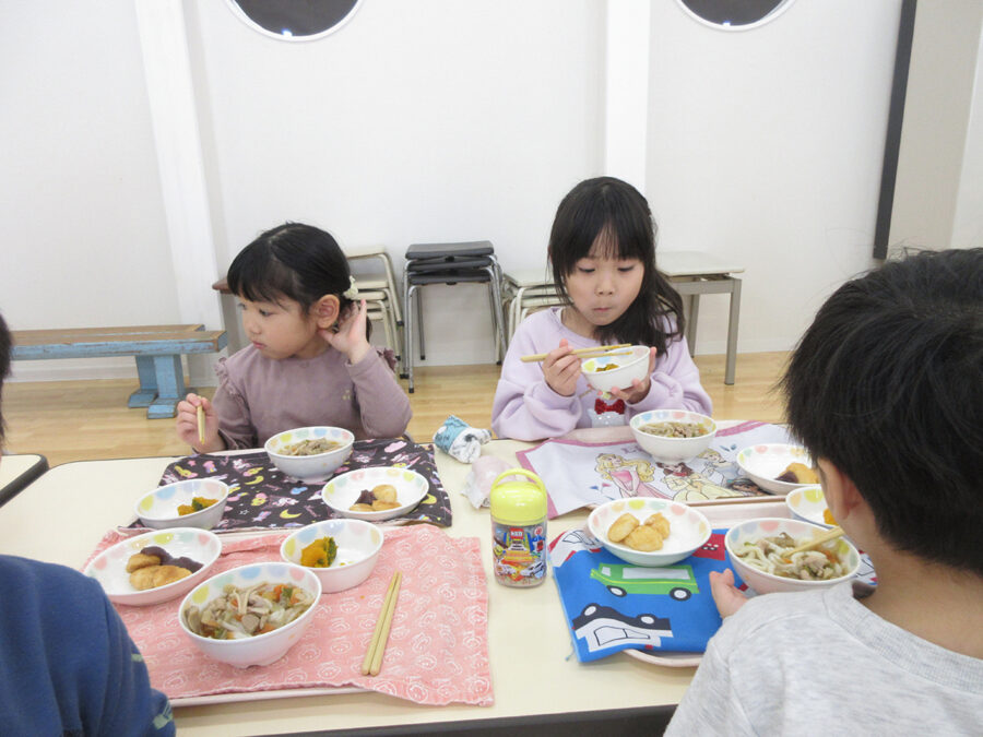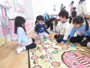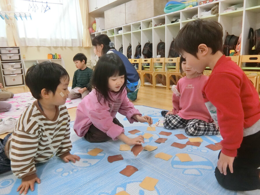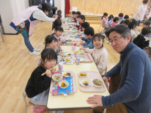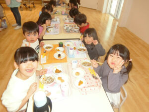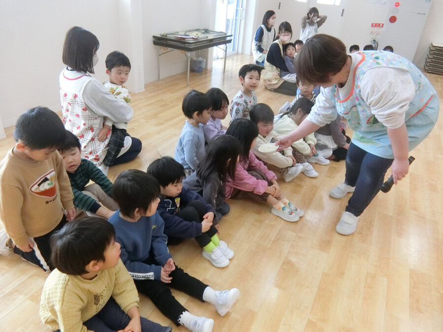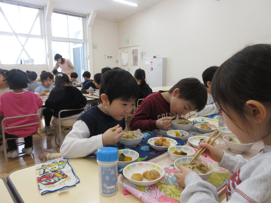冬まつり 1月 ♪ぺったんぺったんぺったんこ♪ 本物の杵はちょっぴり重かったけど、力いっぱい頑張ったよ! やわらかいお餅に、きな粉とあんこを付けて食べたら、 ほっぺたが落っこちそうなくらい美味しかったです! みんなで、お手玉、紙鉄砲、けん玉など伝承あそびも楽しんで 素敵な一日となりました 投稿ナビゲーション 学びタイム誕生会